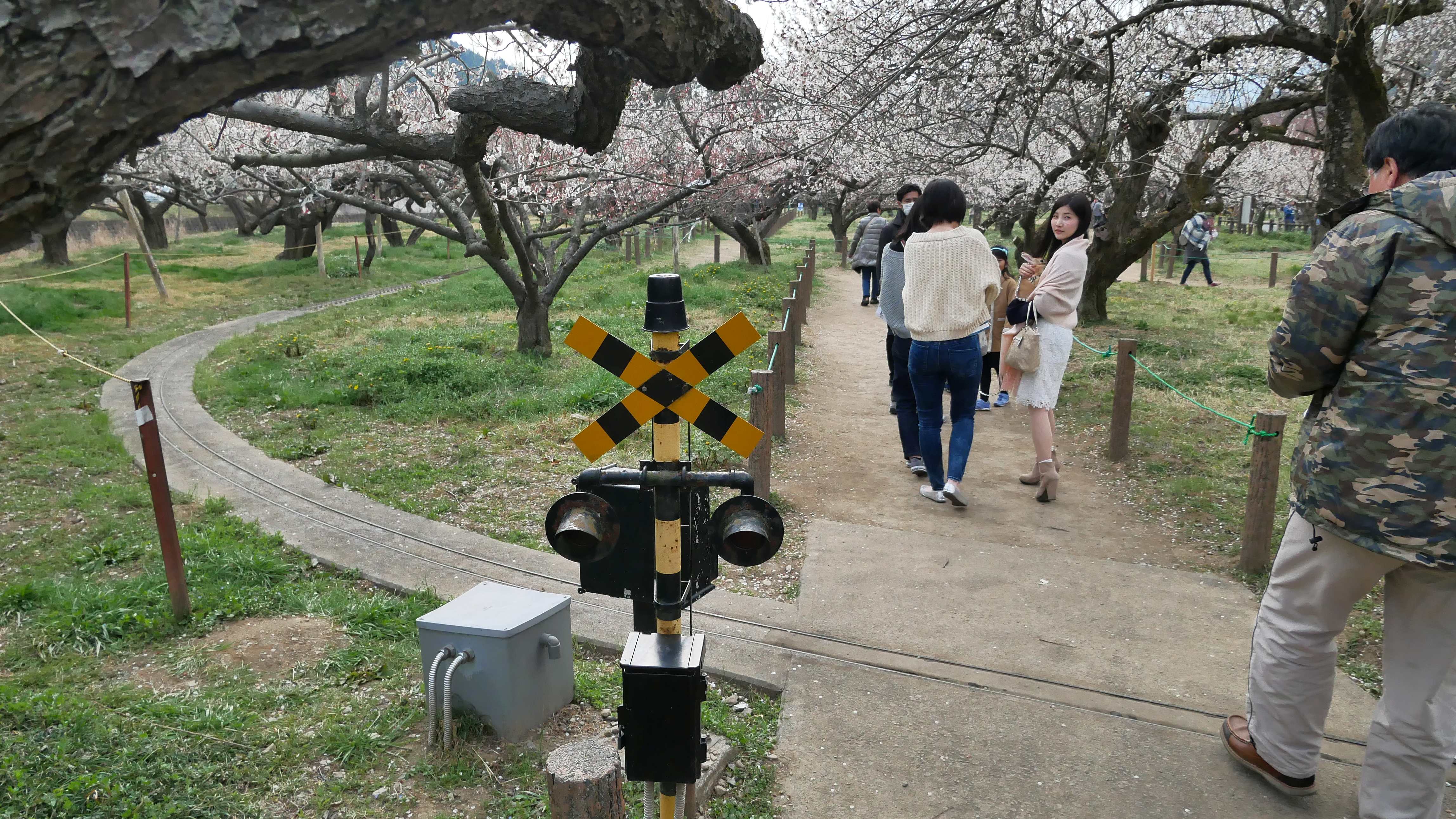 Je, uvnitř sadu to vypadalo jako v nějakém zábavním parku pojaponsku, plno krámků s potravinami, kvetoucími bonsajemi švestek a sakur, tisícem stánků s jídlem, asi tu jsou zvyklí trávit třeba celé dny jako v přírodě. Přitom to byl, no, prostě rozkvetlý sad – ne že by ty švestky nebyly hezké, byly, ale místo tří hodin by stačilo třeba půl hodiny. Ale mělo to i svá pěkná pozitiva, rozkvetlé švestky, jak jinak, nebo krásnou mašinku, která tam jezdí po malém okruhu, má rozteč kolejí asi tak 15 centimetrů, ale uveze i dospělé lidi, to bylo hodně zajímavé. Kubotův králík dělal parádu a byl celý den středem pozornosti, všichni si ho fotili a bylo to pro všechny hrozně cute. Prostě Japonsko.