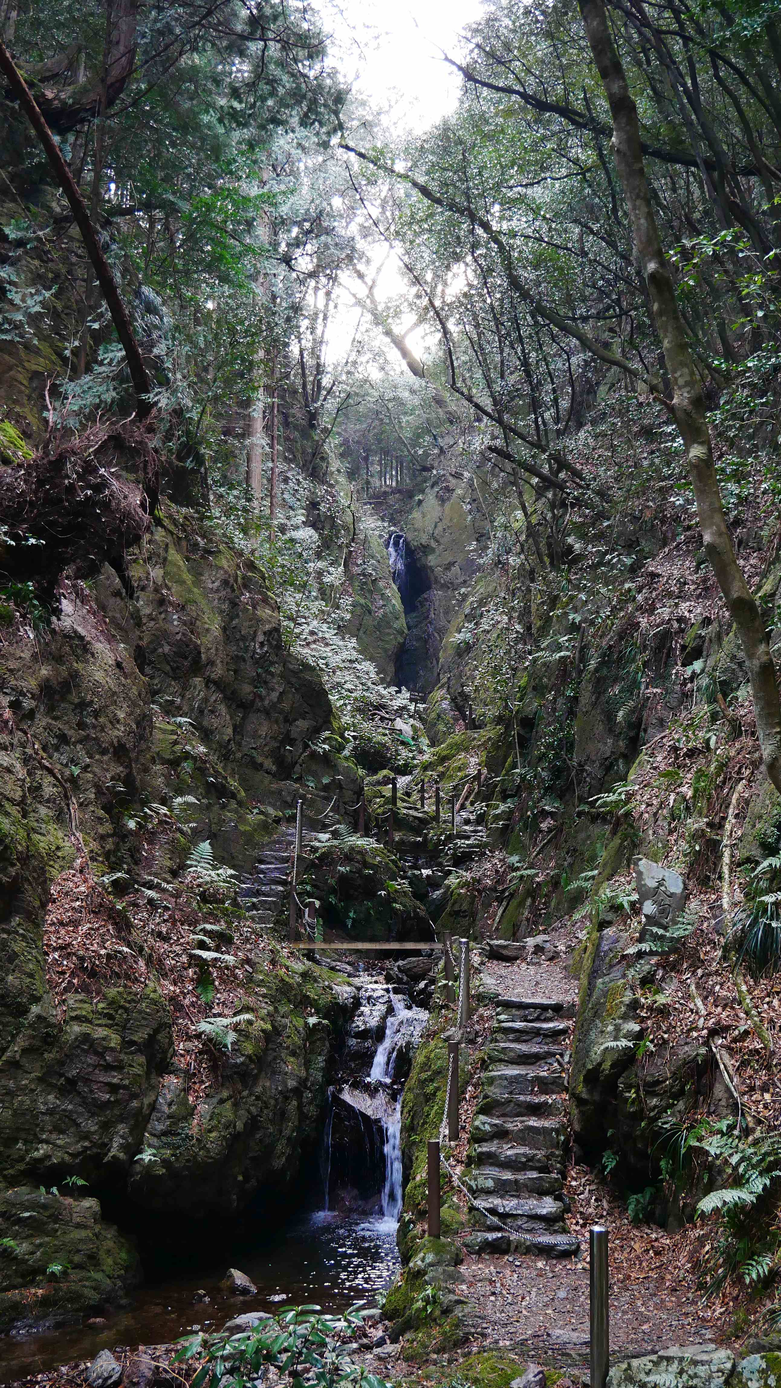 Po návštěvě saké factory jsme se vydali autem na druhou stranu Ogose, vlastně až k blízkým horám, kde jsme zastavili na konci pár set metrů serpentýn. Zdá se, že to bude nějaký krátký výlet do místní přírody. Taky že jo, už cestou k horám osídlení trochu prořídlo a objevily se cedry, kterých tu je na kopcích teda požehnaně, až z toho mají místní tu alergii, proti které se většina lidí chrání rouškami. Asi hodinu jsme si tedy udělali procházku po cestě do kopce, ke krásným třem vodopádům a šintoistické svatyňce. Tady se mi hrozně líbilo, vytáhl jsem foťák a dost fotil. Charakter jejich lesa je fakt úplně jiný. Cedry, kvetoucí kamélie, velikánské odkvetlé hortenzie, kapradí a plno dalších neznámých kytek. Tady to byla jedna z nejlepších částí dneška.