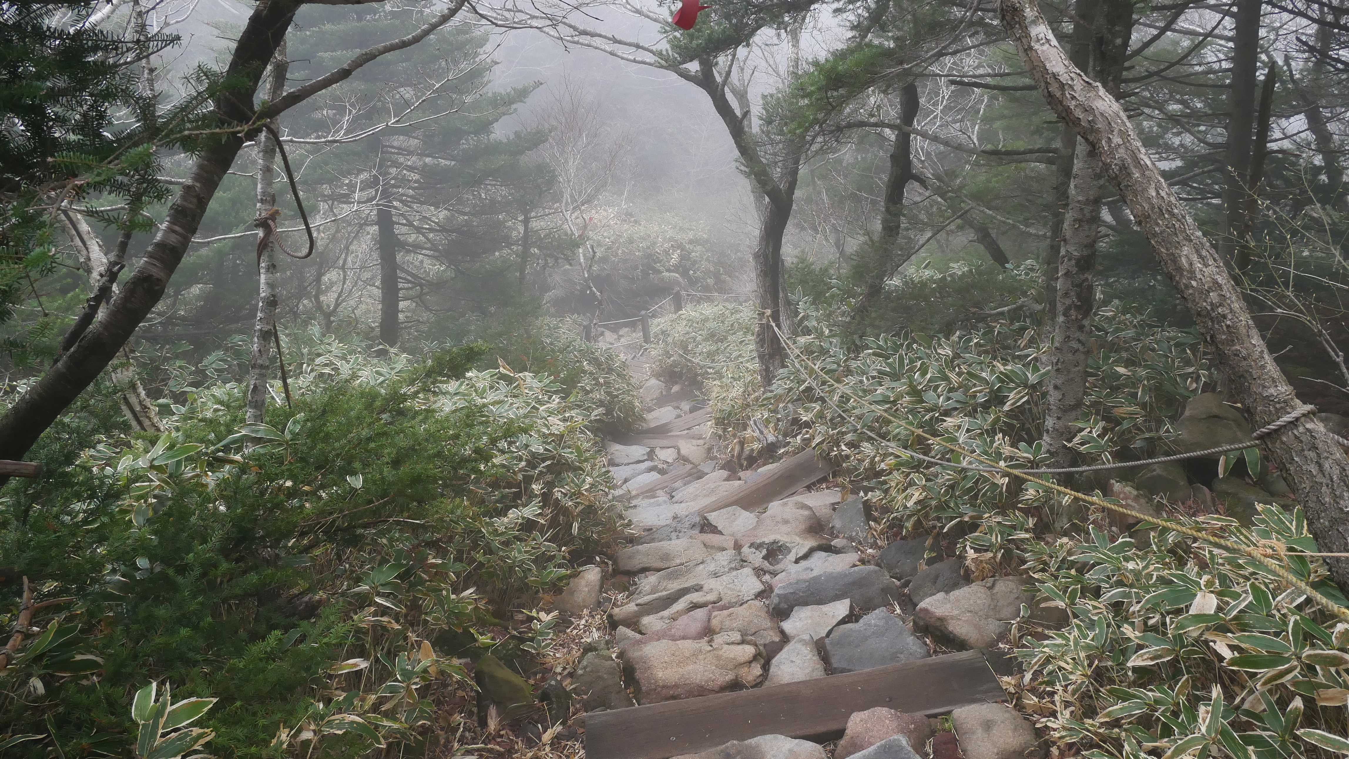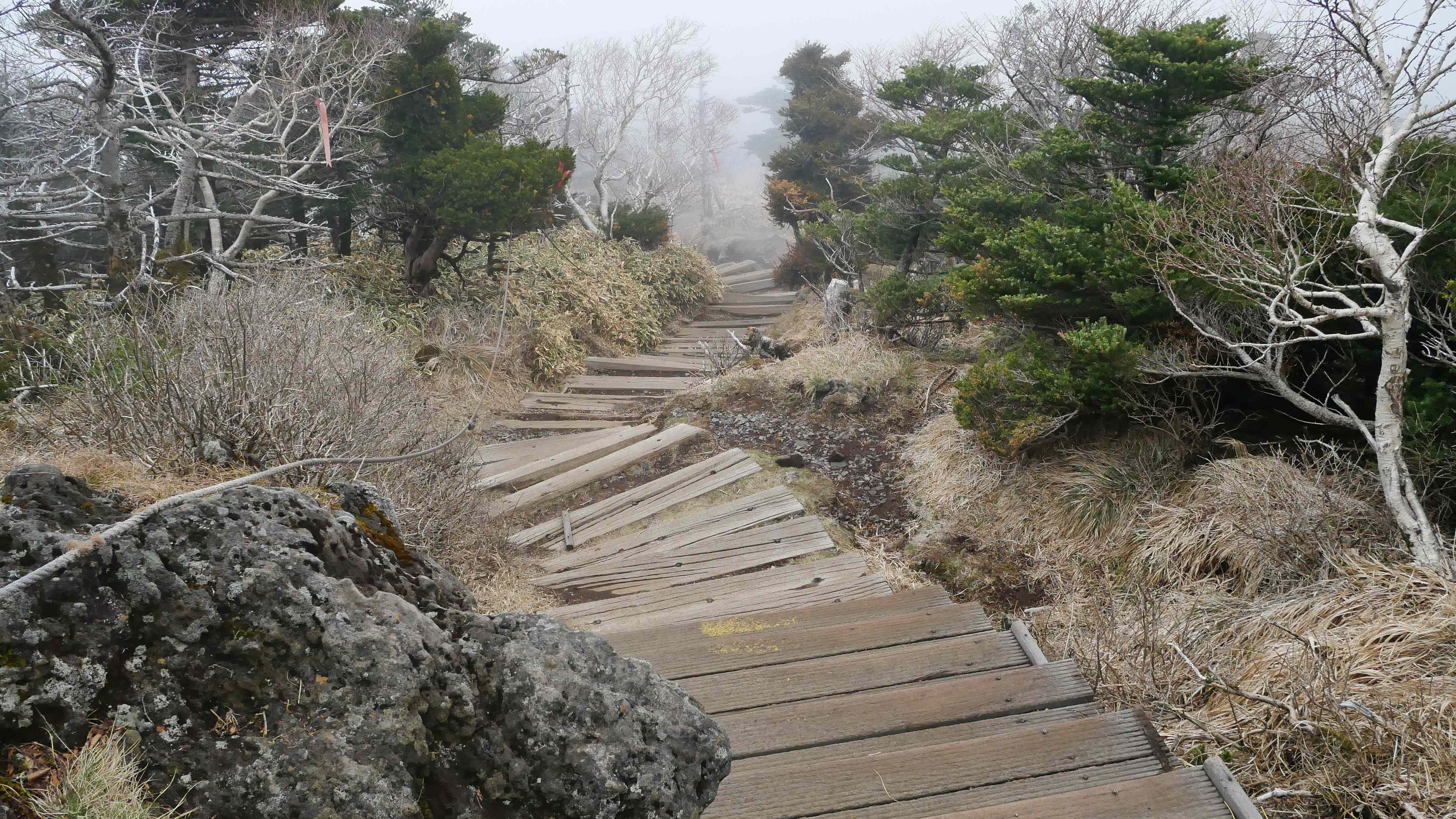 Vyrážím tedy brzy ráno autobusem ze Seogwipa do Seongpanaku, odkud vede asi 9 km stoupání s 1200 výškovými metry převýšení. Začátek byl sranda, cesta je zde pěkně upravená, jsou na ní korejské pletené rohože, což má opravdu něco do sebe. Jak jsou měkké, tak je chůze po nich dost příjemná, když člověk nemusí skákat po kamenech.